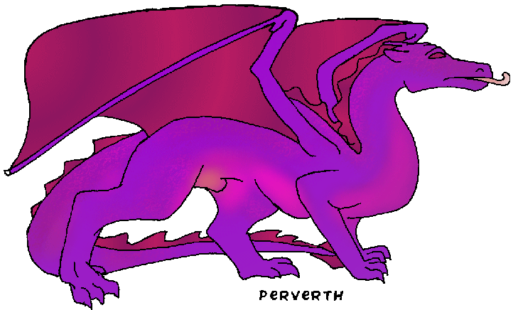A twotoned and slinky dragon like this deserves a chance to slip in where he could do the most good... Or damage... With Faus being able to introduce him to the most interesting people, we're sure that Perverth will find the time to grope his way through a population. He's about 27 feet long, a reasonable size male. His tongue is over a foot long!