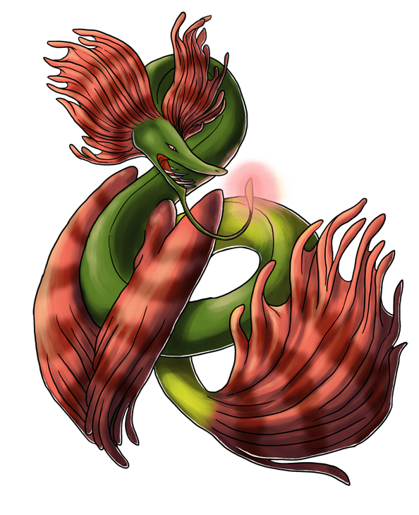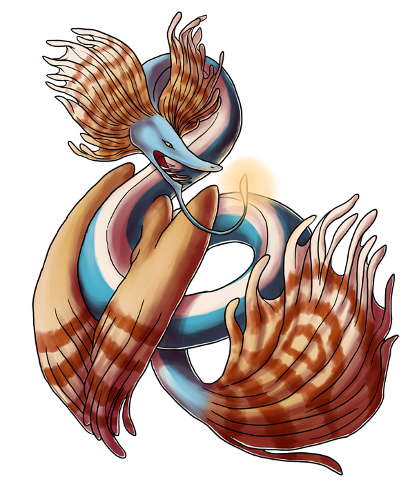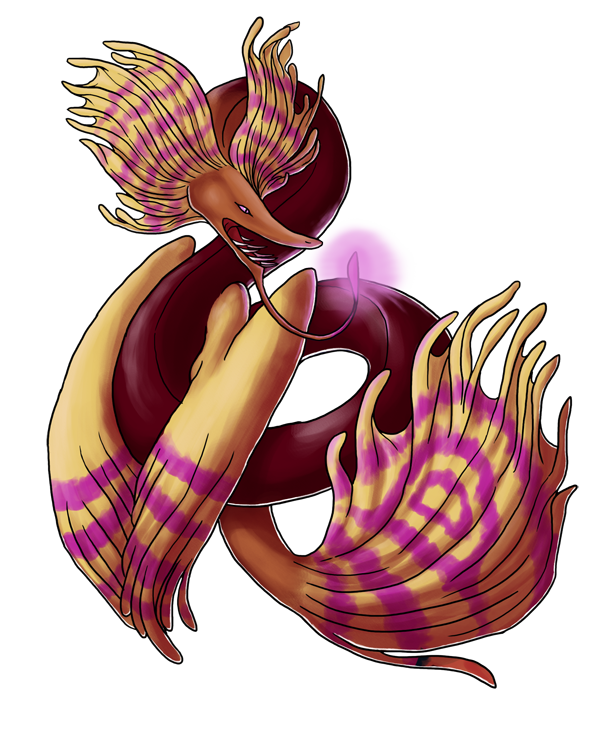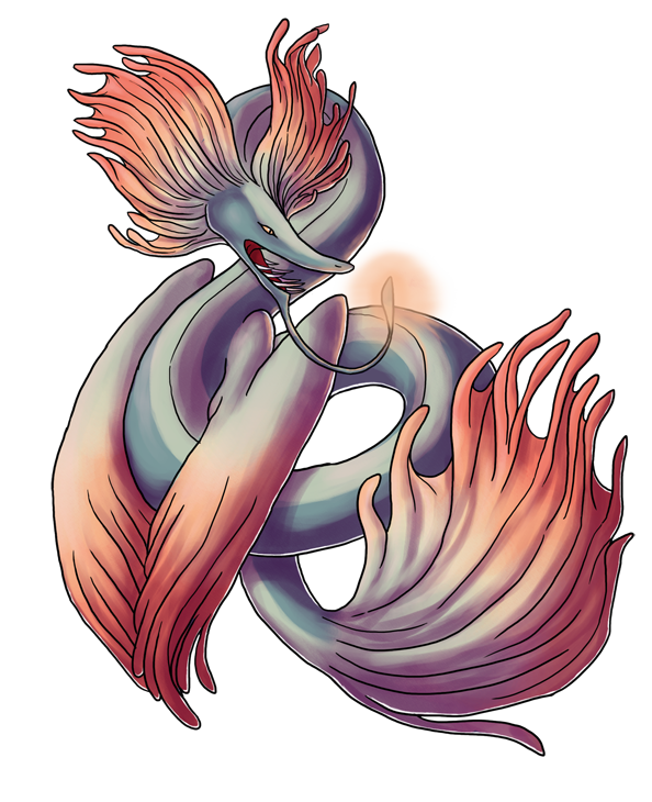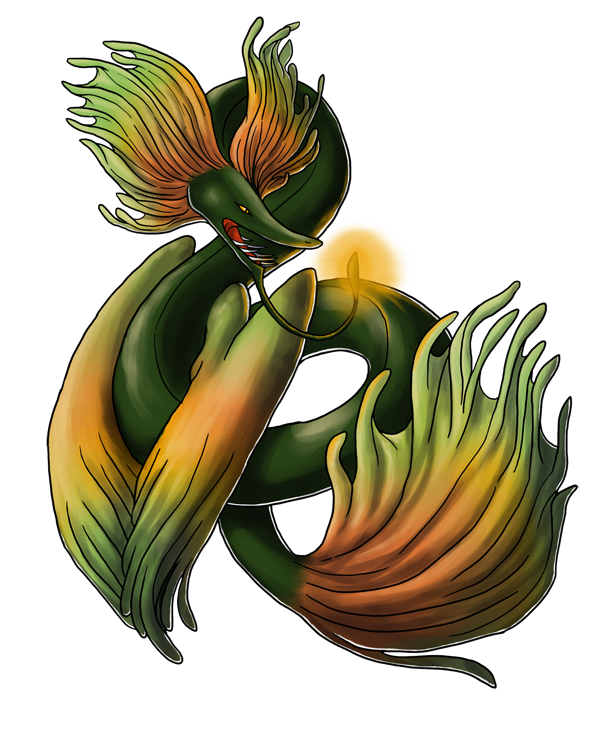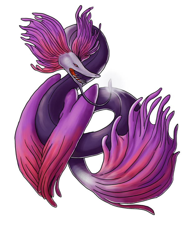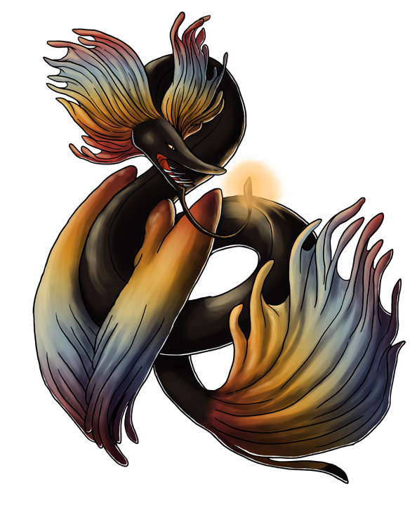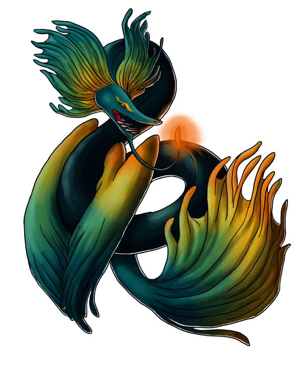 Personality: Myxinei is a take charge, live life to its fullest sort of fellow. He's eternally optimistic, coupled with his preternatural patience means he never loses hope that a situation will turn out for the best. He just has to wait! He's calm and collected, letting worries roll off him without a second thought. He always has a kind word for those that need it and is quite sweet despite his fearsome appearance. Myxinei loves puzzles, which doesn't mean he's particularly good at them but he'd happily spend a whole week ruminating on a riddle.