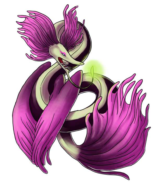 Personality: Mitsukarina felt as if she had to fight to get the chance to bond to Mehethrelos - battling off her own siblings as well as the other hatchlings in the frenzy. To choose the embodiment of oceans was such a great honor and Mitsu is endlessly dedicated to Mehethrelos. She's gifted with a quick mind and sharp wit, cunning to the point of being troublesome. She is appreciative of beauty and enjoys both music and visual arts. She endeavors to be a source of inspiration for her bond, pondering vast, unusual options for future aquatic creations.