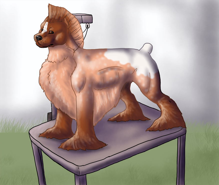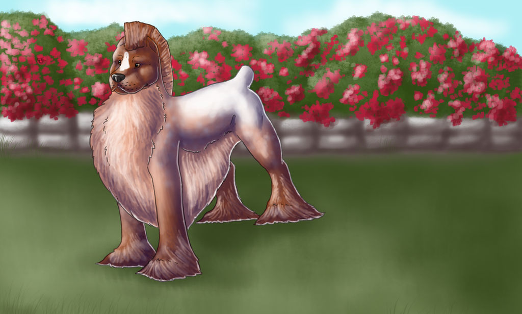 At will and without limitation, Alice can shift into a Deustche Pferd Hund des Kriege, a massive German war dog bred for strength and bravery. In her dog form, Aliceis 42" at the withers and built for strength and stamina. Her coat color is "strawberry roan snowcap appaloosa with snowflake". She retains her ability to rationalize as a sapient being, but can't communicate with verbal language.