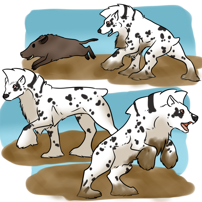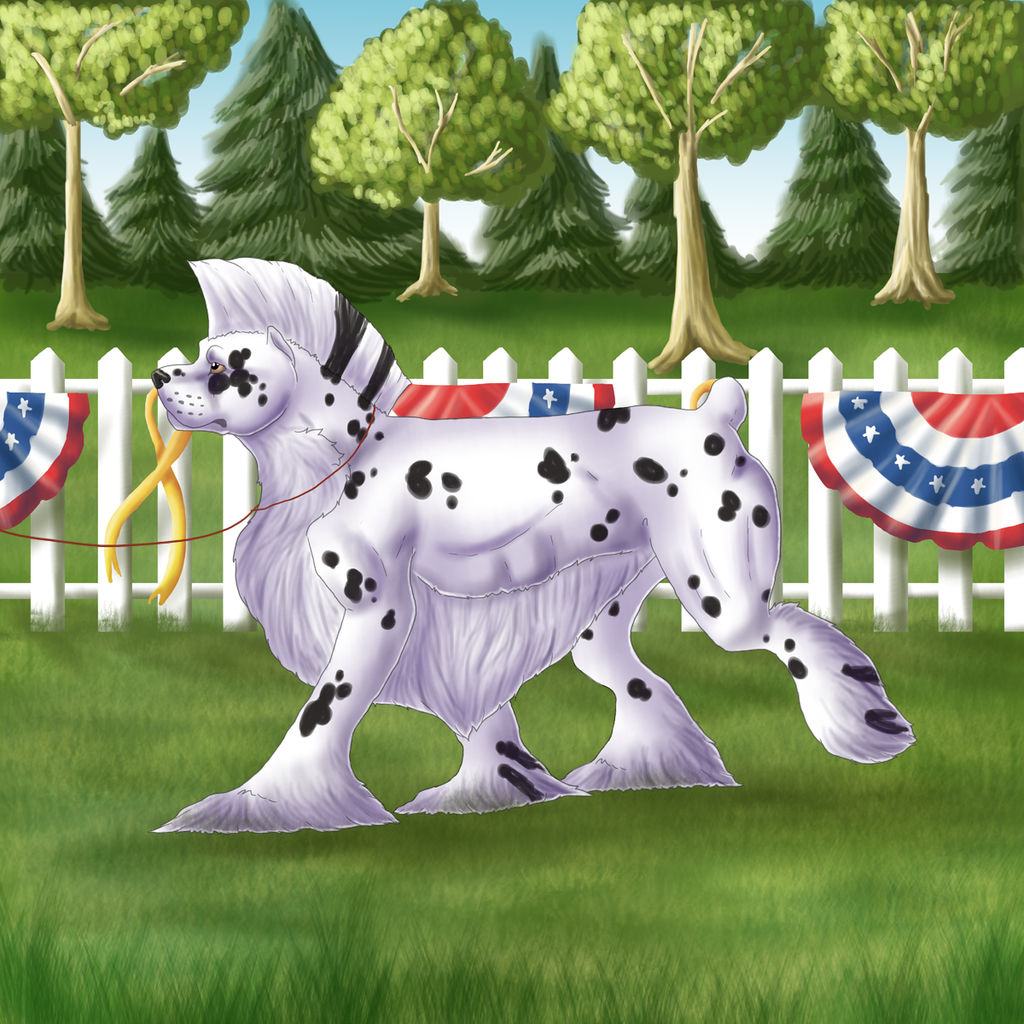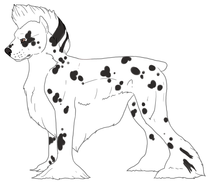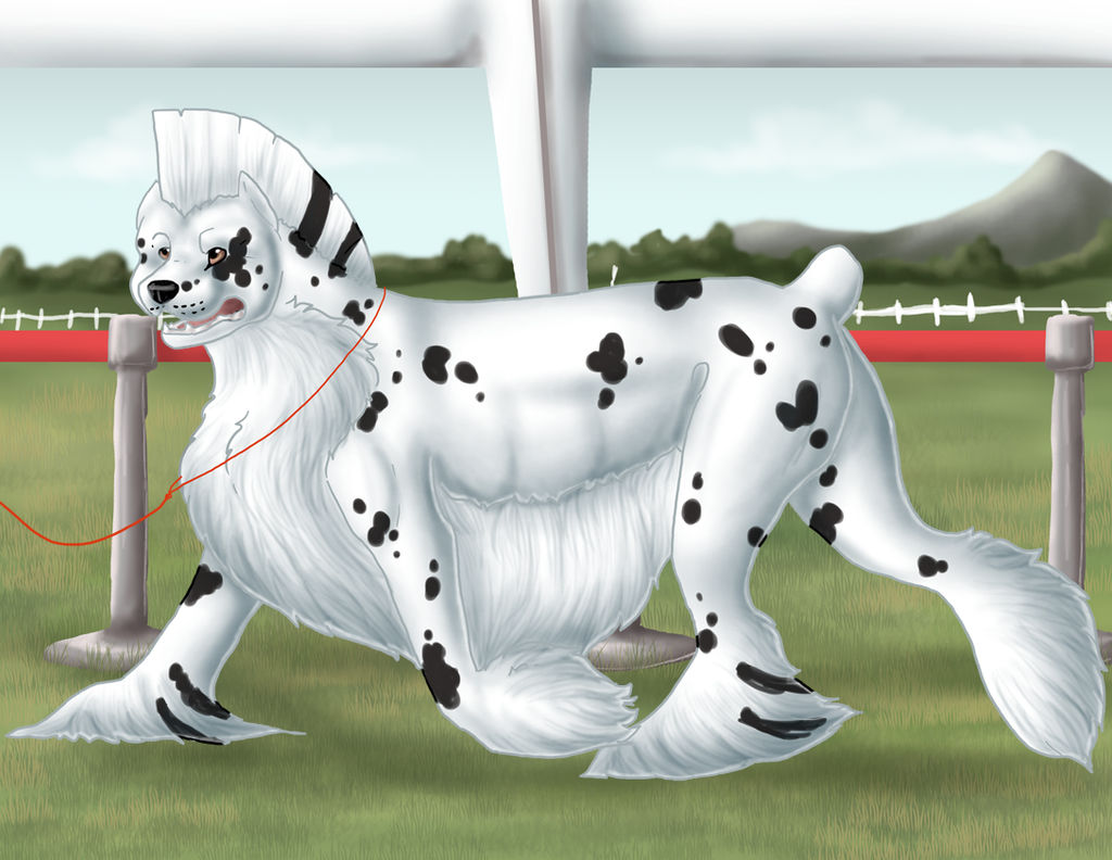 In their dog form, Zammis is 42" at the shoulder. They are a black-based leopard appaloosa.