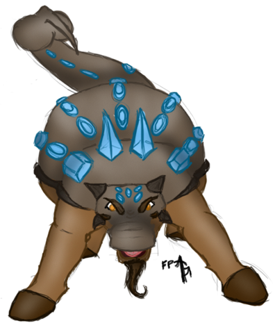There is one thing Corkon truly does love, and that's the color blue. Like a bower bird, Corkon collections blue objects - feathers, flowers, trash left behind by inconsiderate visitors, he doesn't care as long as it's blue. He's amassed quite a collection and it gives him a great sense of joy and serenity when he views it. Corkon can be persuaded to participate in group activities or help out in his biodome in exchange for particularly fancy blue objects.