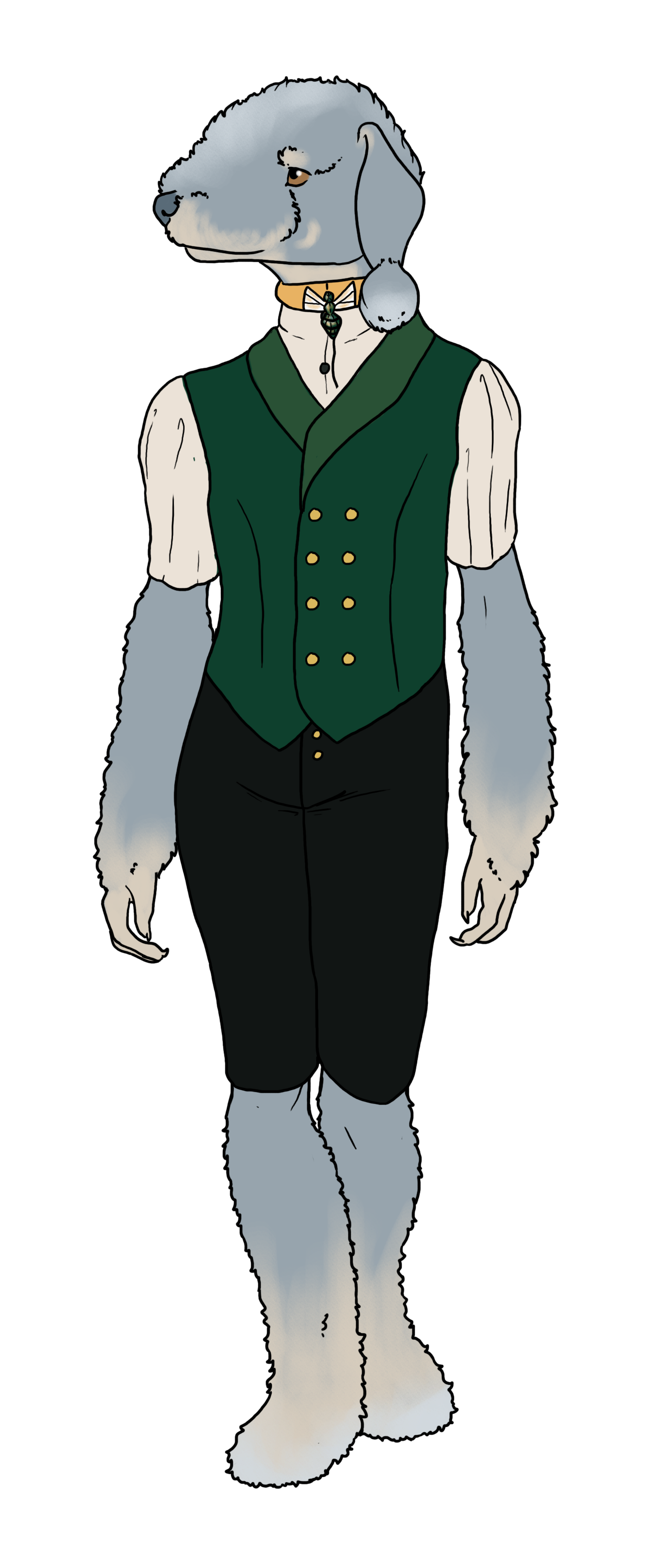 | Species | Tiefling/Anthro Bedlington | Pronouns | he/him |