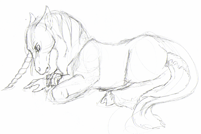 The Demon is a formidable looking equine, reaching six feet at the whithers, and sported a fairly natural build for his species. He sports a silky, shimmering white coat, and a mane and tail of the deepest shades of red. His eyes are liquid gold, and his horn long, spiraled, and ivory in hue. He is, all together, the most similar in appearance to that of the natural unicorn. The Demon sports but two notable differences; arms.