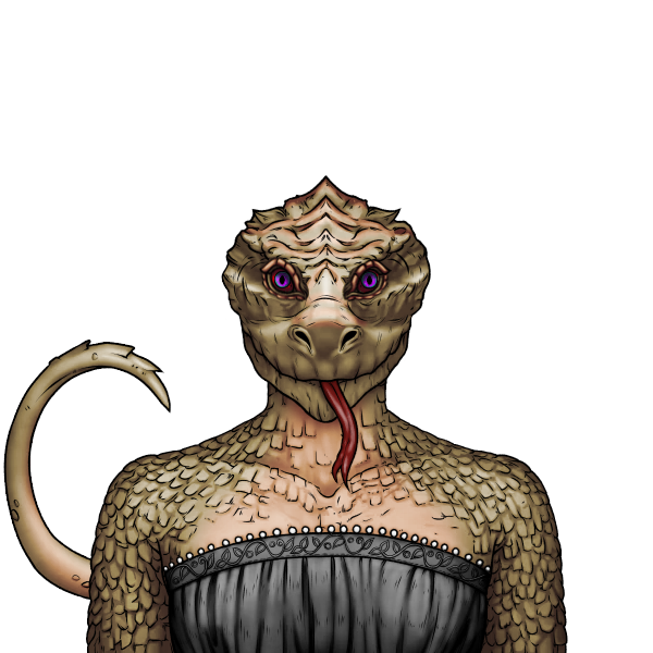 Hessetal has no allegiance to any god and prefers to keep to herself. She's no stake in the wars brewing, apart from a general desire to still have a home when it's all over. She'll help people in need, but won't be nice about it.