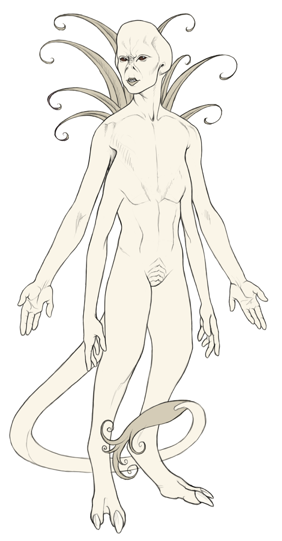 While most murdon require the aid of technology to shapeshift, Kutoth's creation abilities have given him some leeway. He is comfortable in many forms, typically humanoids or other sapient aliens, but since forming the Refugium he spends most of his time in his own skin.